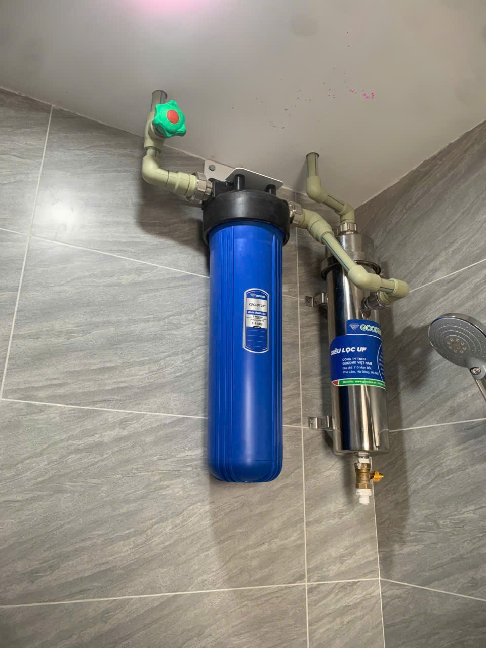 Màng siêu lọc UF Với kích thước từ 0,1~0,001micron (µm) màng lọc UF có thể lọc sạch các tạp chất có kích thước nhỏ hơn cả vi khuẩn, loại bỏ dầu, mỡ, hydroxit kim loại, chất keo, nhũ tương, chất rắn lơ lửng,và hầu hết các phân tử lớn từ nước và các dung dịch khác như (phấn hoa, tảo, kí sinh trùng, virut, và vi trùng gây bệnh…)và đặc biệt là có thể triệt tiêu được vi khuẩn tới 99.9% dường như không còn vi khuẩn. Các phân tử có kích thước lớn hơn như các loại tạp chất, virus, vi khuẩn sẽ bị giữ lại và thải xả ra ngoài. qua tất cả các bước lọc khắt khe nhất từ các lõi lọc, cấp lọc và màng siêu lọc UF đã cho ra một nguồn nước siêu tinh khiết đảm bảo sức khỏe tối ưu cho mọi người sư dụng.