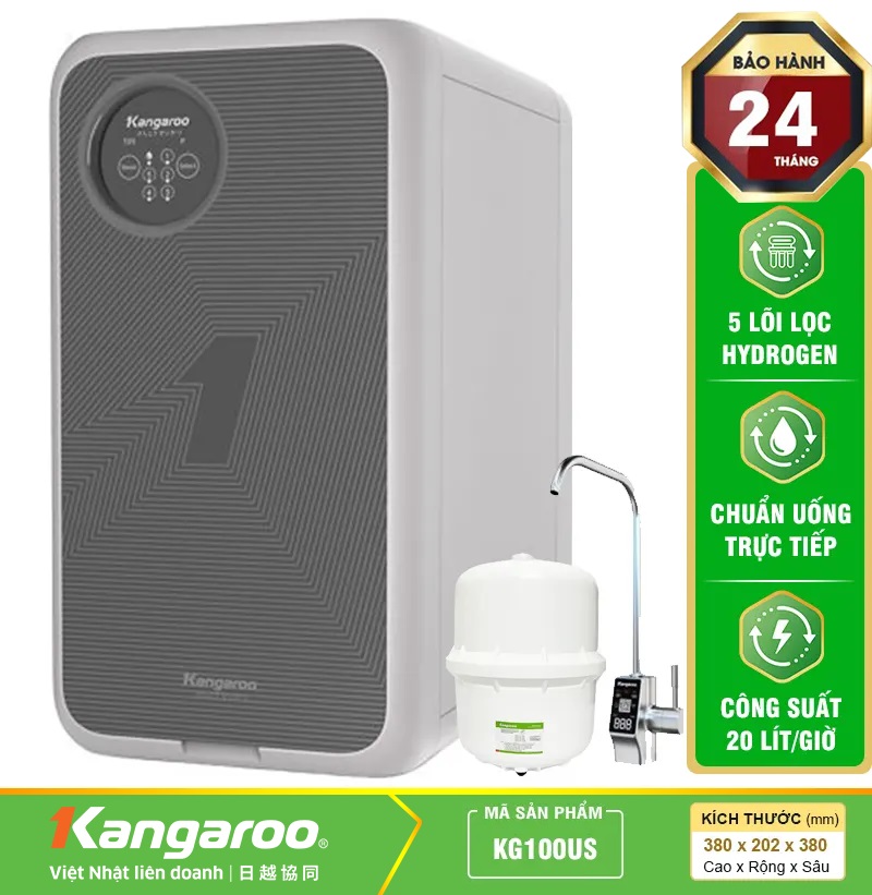 Kangaroo Hydrogen KG100US là thế hệ máy lọc nước mới nhất với những tính năng thông minh vượt trội. Thiết kế nhỏ gọn, công suất lọc lớn 20L/h, cảnh báo thay lõi và hiển thị chất lượng nước sạch TDS ngay tại vòi,… KG100US sẽ là sản phẩm hoàn hảo dành cho gia đình bạn.